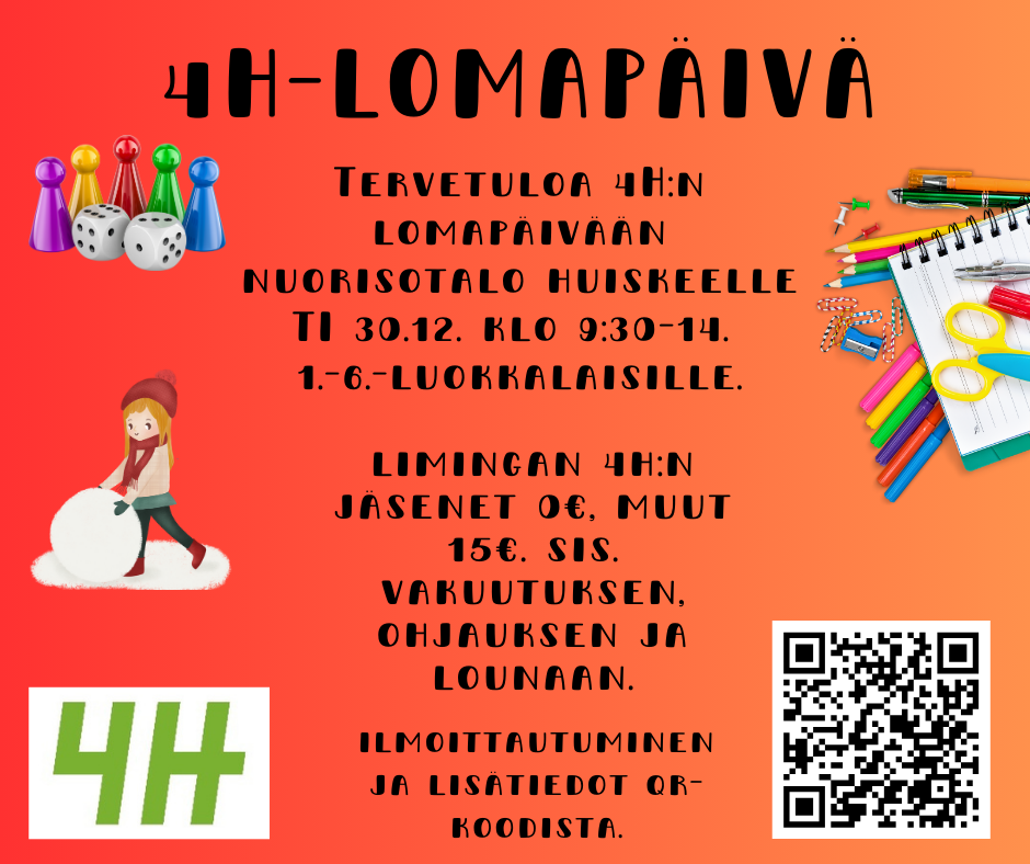 4H-Lomapäivä Liminka ma 29.12.25 klo 9:30-14